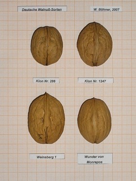 Wertvolle Sorte aus Weinsberg/Baden-Württemberg für den allgemeinen Anbau. Blüte früher als Moselwalnuß, deshalb besonders da zu empfehlen, wo Spätfröste den Austrieb nicht beeinträchtigen.